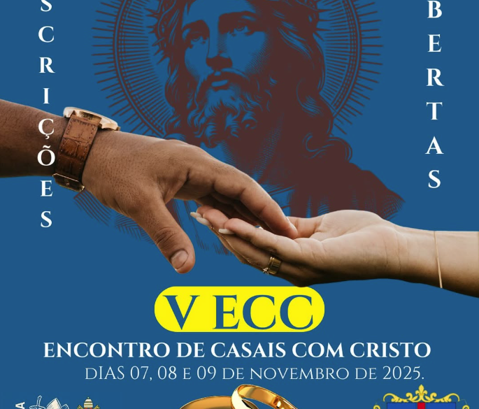 A Paróquia São João Paulo II, em Águas Claras, informa que estão abertas as inscrições para o 5º Encontro de Casais com Cristo – ECC, que acontecerá nos dias 07, 08 e 09 de novembro de 2025.