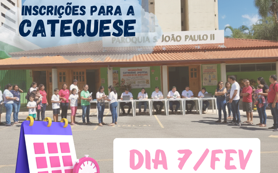 É com grande alegria que a Paróquia São João Paulo II convida toda a comunidade para o início de mais uma jornada de fé e formação cristã. As inscrições para a Catequese de Crianças, Jovens e Adultos serão acolhidas, exclusivamente, no dia 7/Fev (Sábado).
